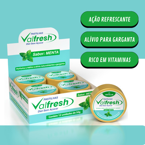 Pastilha Garganta Valfresh Menta Sem Açúcar Vit C 12 Latas