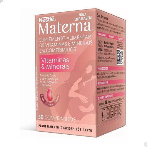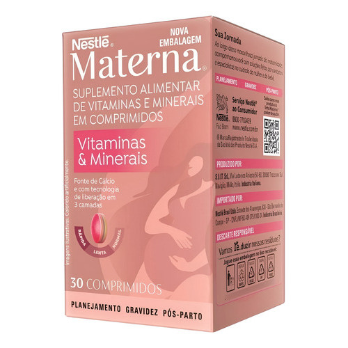 Materna Nestlé, Nestlé Materna, Materna 30 Comprimidos, Vitamina Materna, Suplemento Materna, Polivitamínico Materna, Materna Gestante, Materna Gravidez, Materna Pós Parto, Vitamina para Gestante Materna, Suplemento para Grávida Nestlé, Materna Nestlé Pré